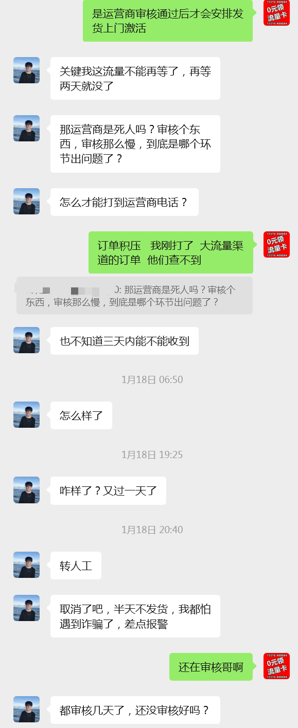 这哥们我印象最深刻了,因为是上夜班的,白天休息无法接听到回访电话,接不到回访确认订单,运营商就不给安排发货,前前后后折腾了半个月才拿到手,几乎天天催单,好在最后拿到了对得起这份信任!