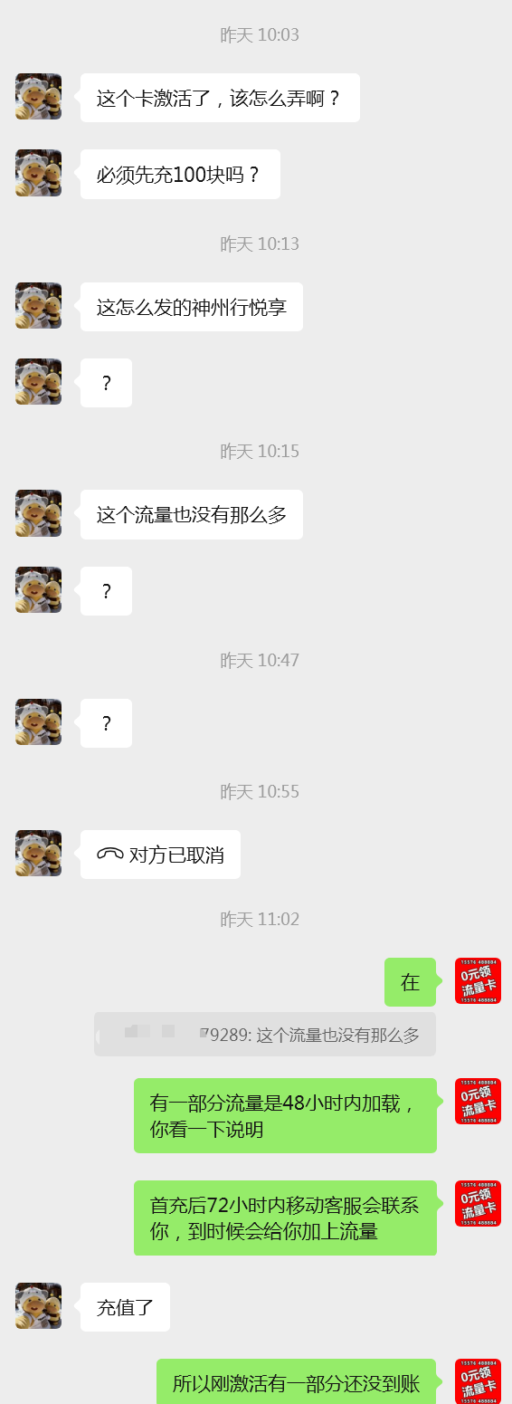 这兄弟首充后流量不够,因为有一部分流量是参加活动后72小时内到账的。给我发信息周末休假了又打了十几个电话,催单后当天晚上流量就到了!