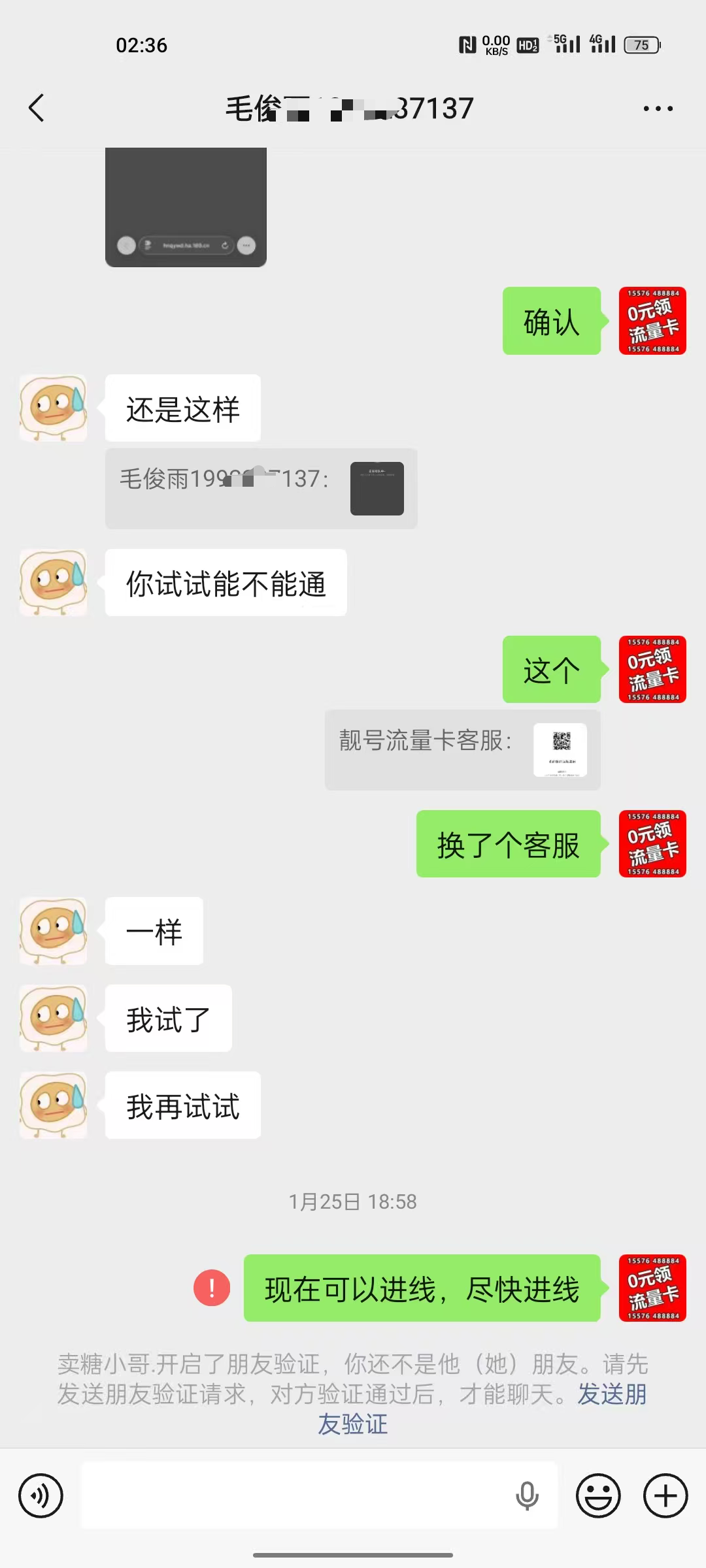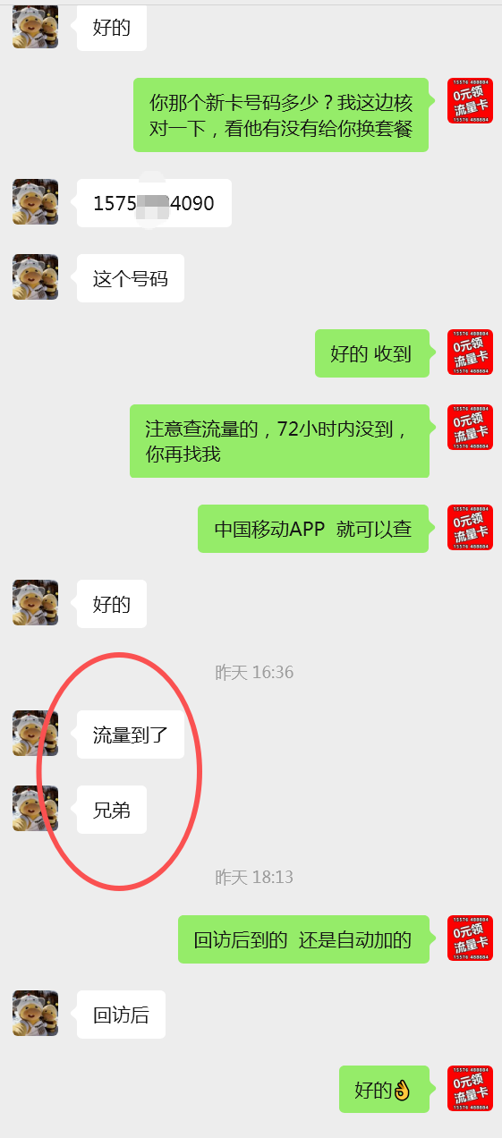 这哥们的流量是自动到账的,没有回访系统自动加的,有时候订单太多客服根本回访不过来就自动加流量包了!