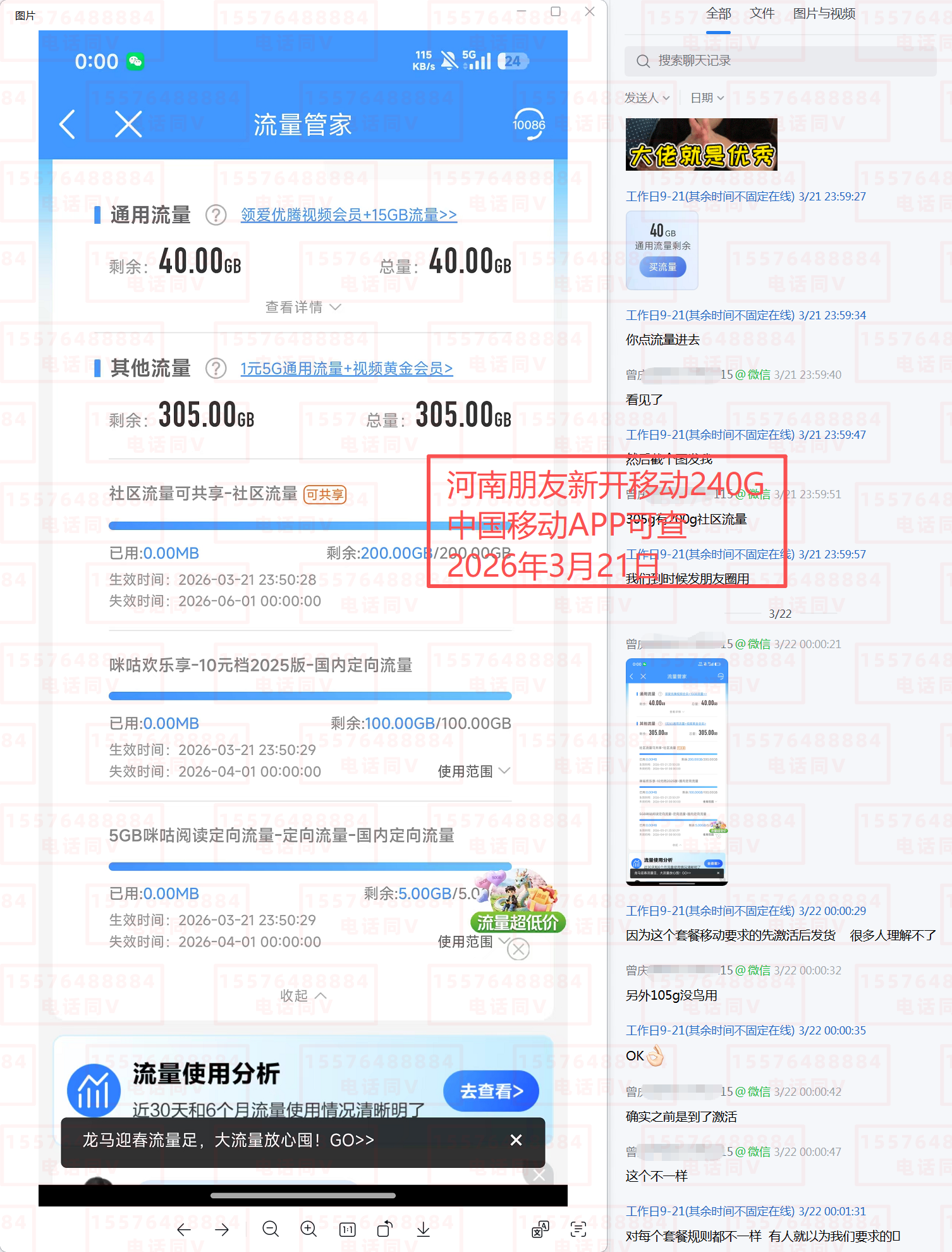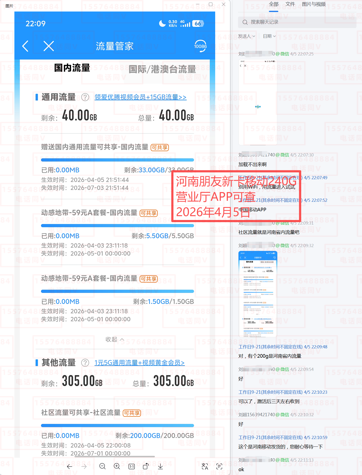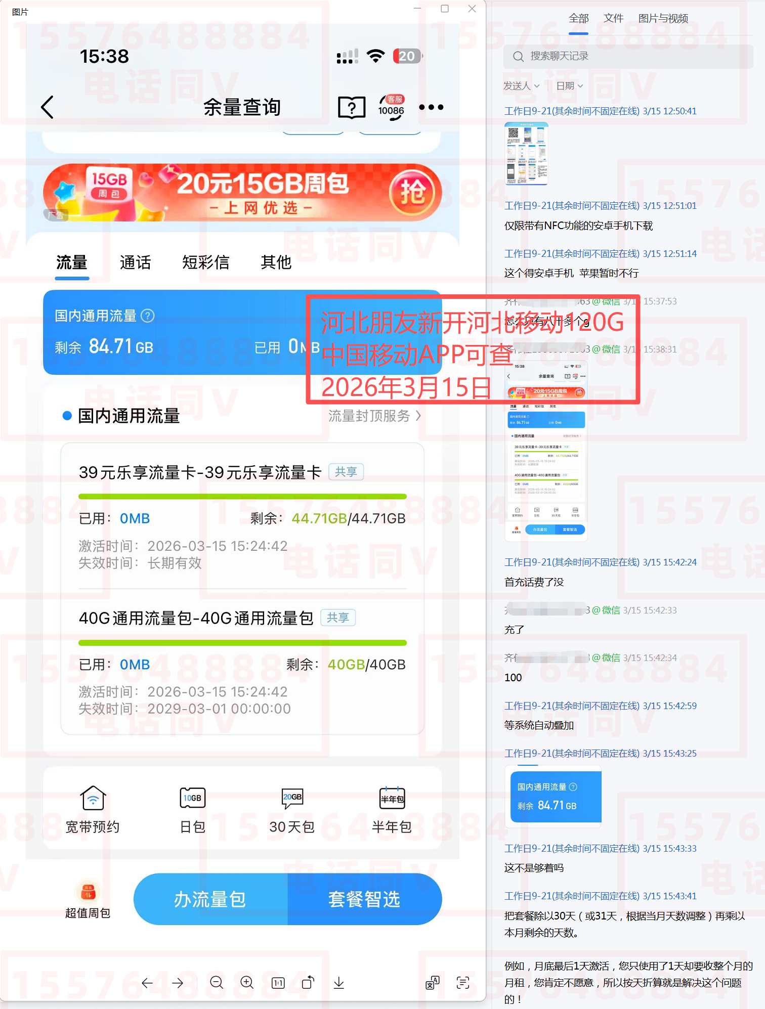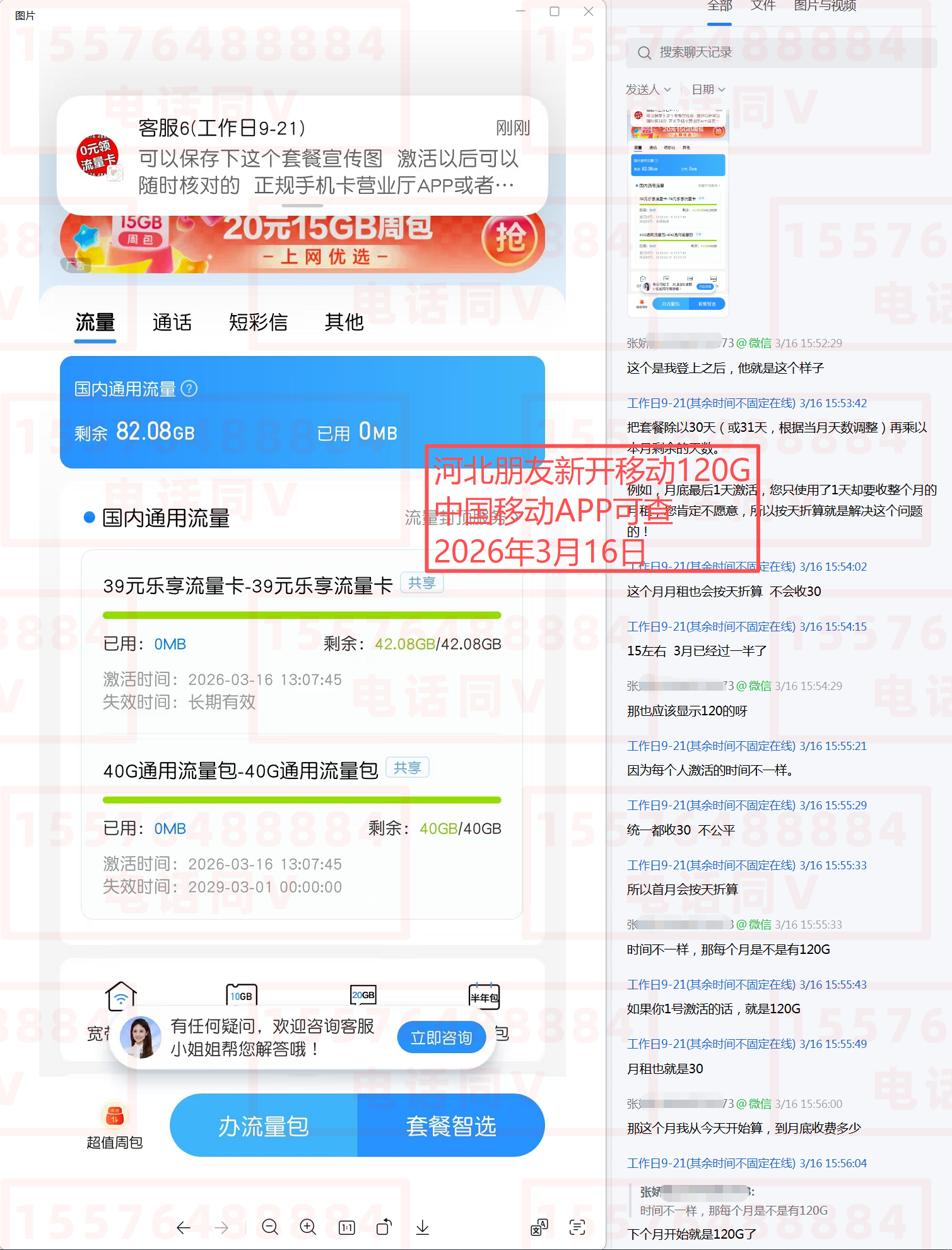 近期河南移动新开通大流量卡返图,本套餐运营商要求先激活后发货,正规手机卡,营业厅APP/移动客服10086均可查!
