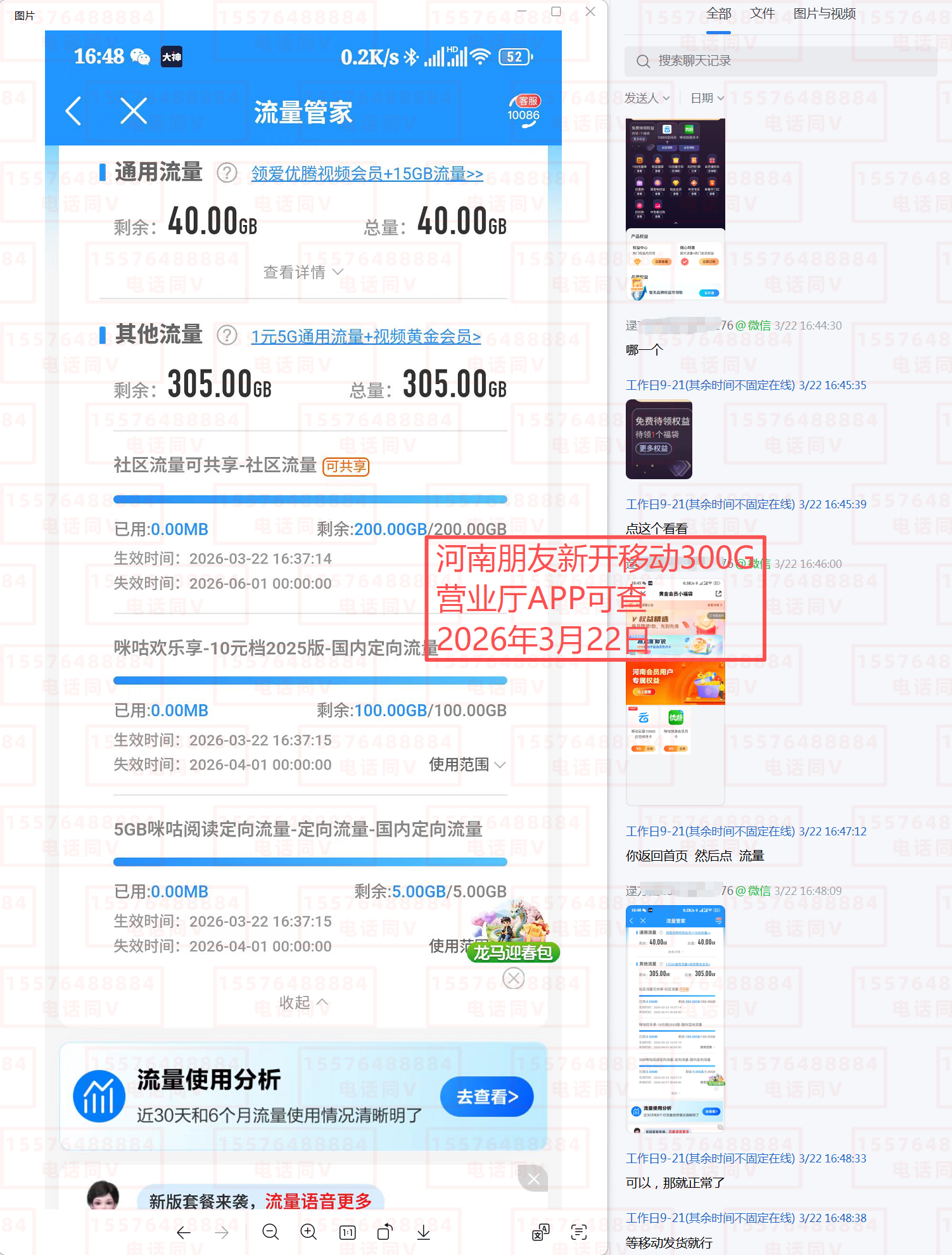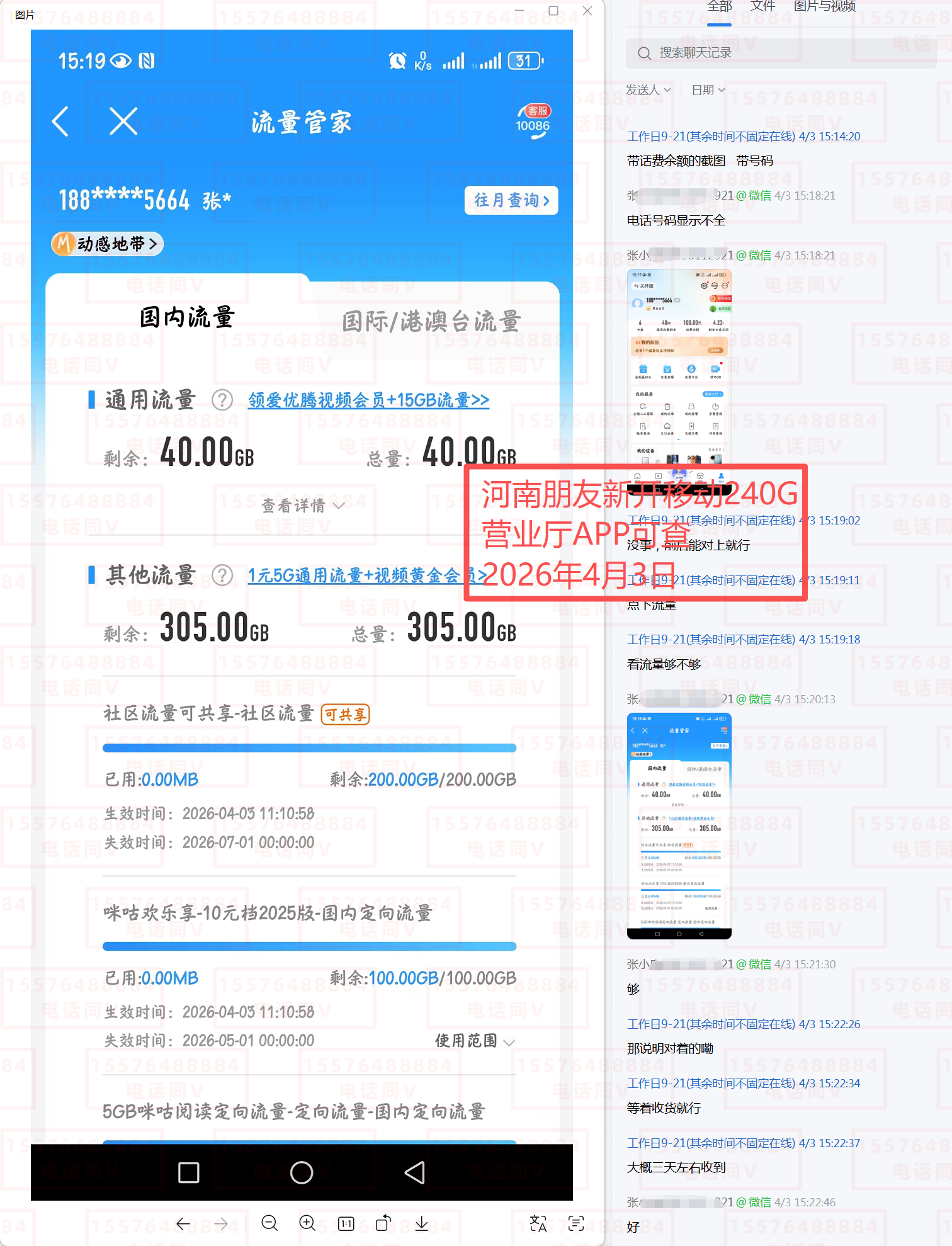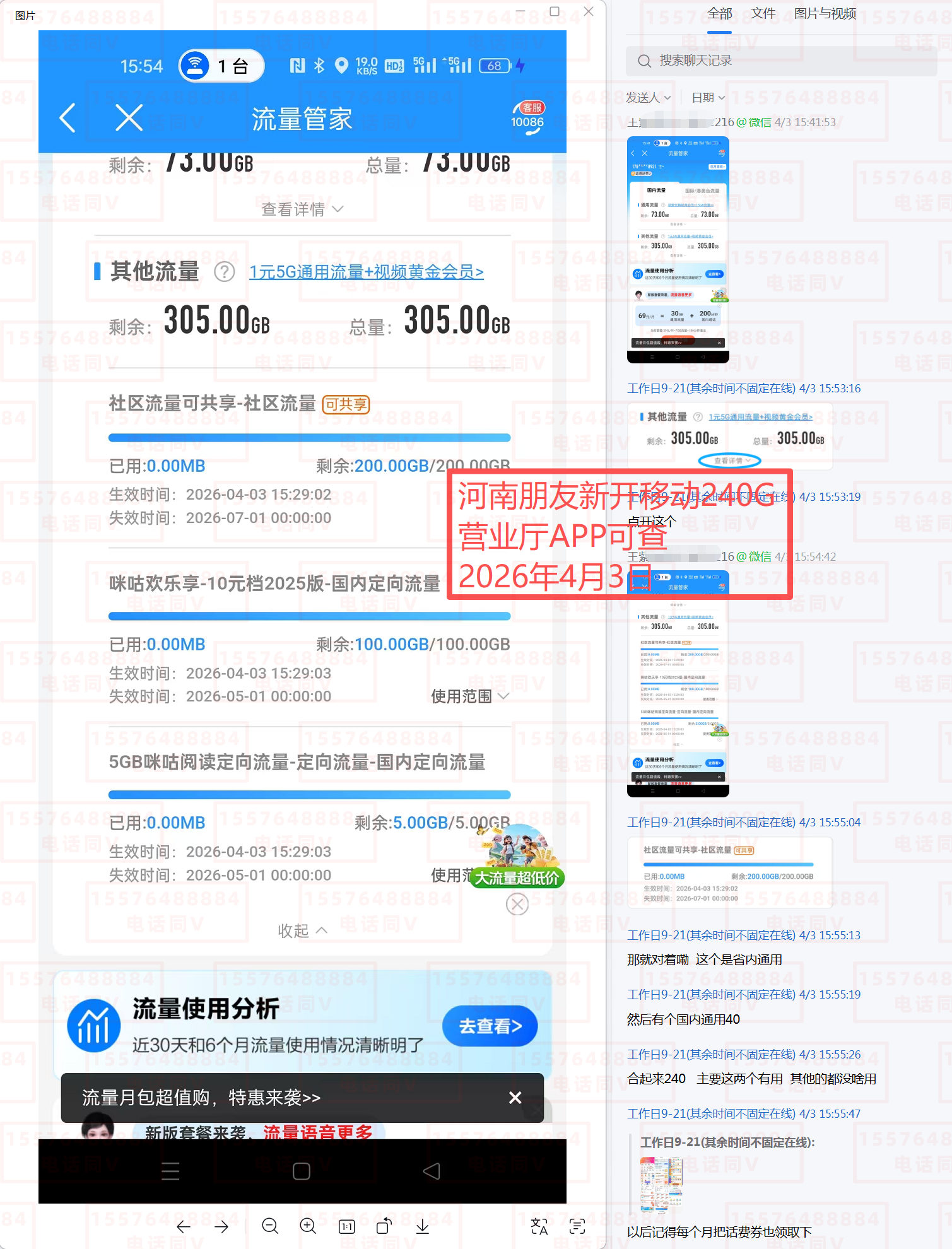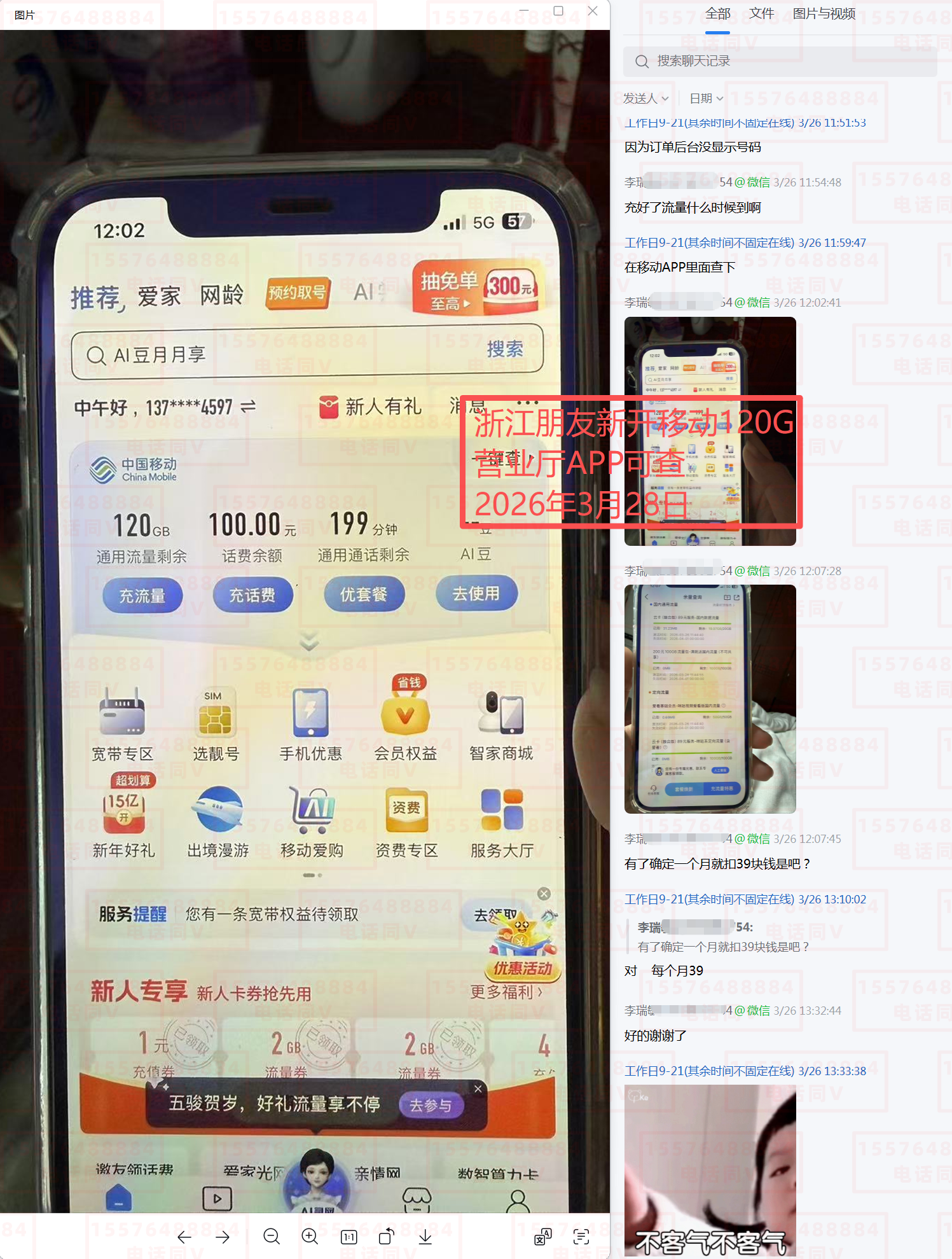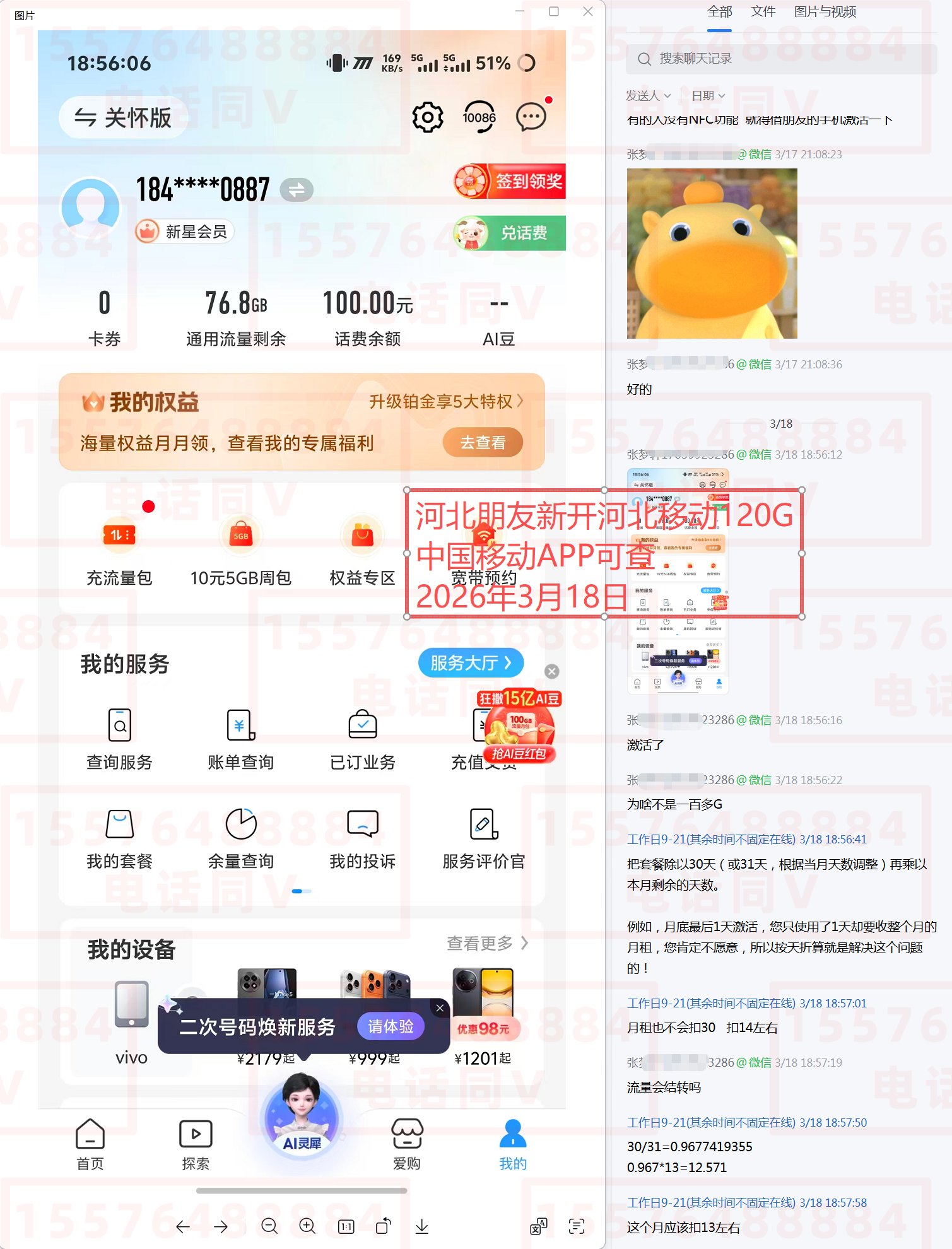 近期河南移动新开通大流量卡返图,本套餐运营商要求先激活后发货,正规手机卡,营业厅APP/移动客服10086均可查!