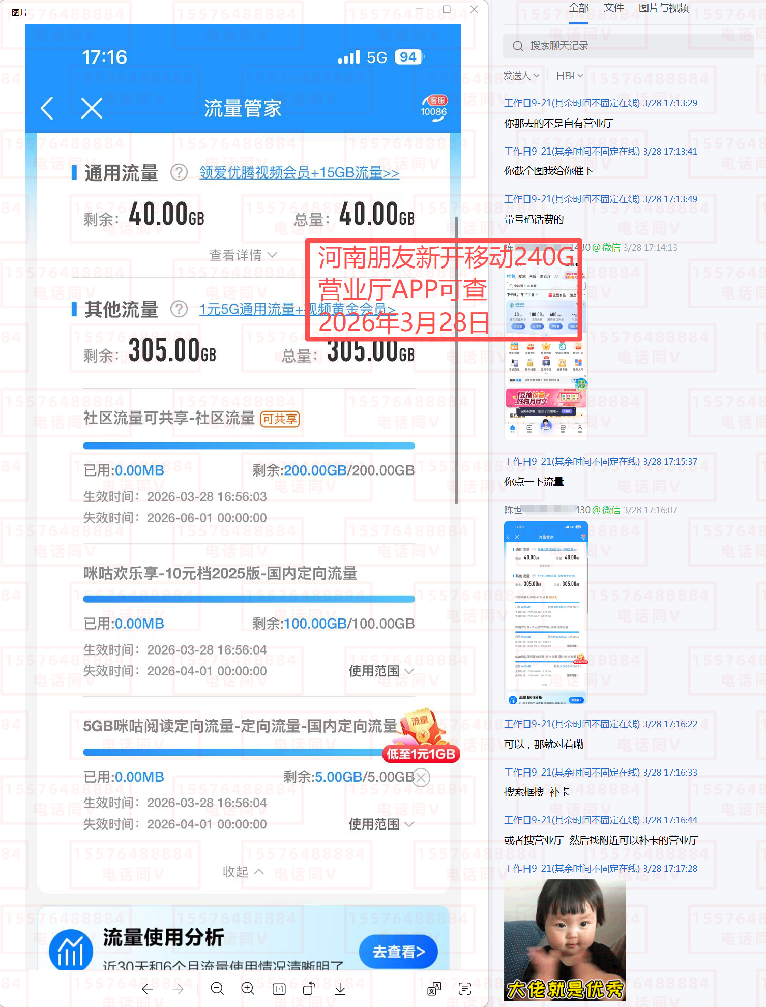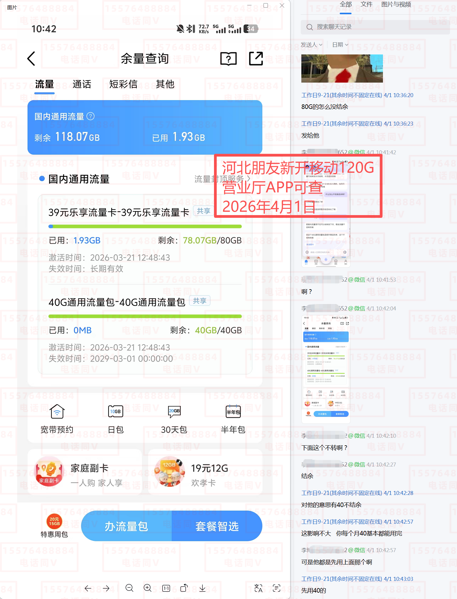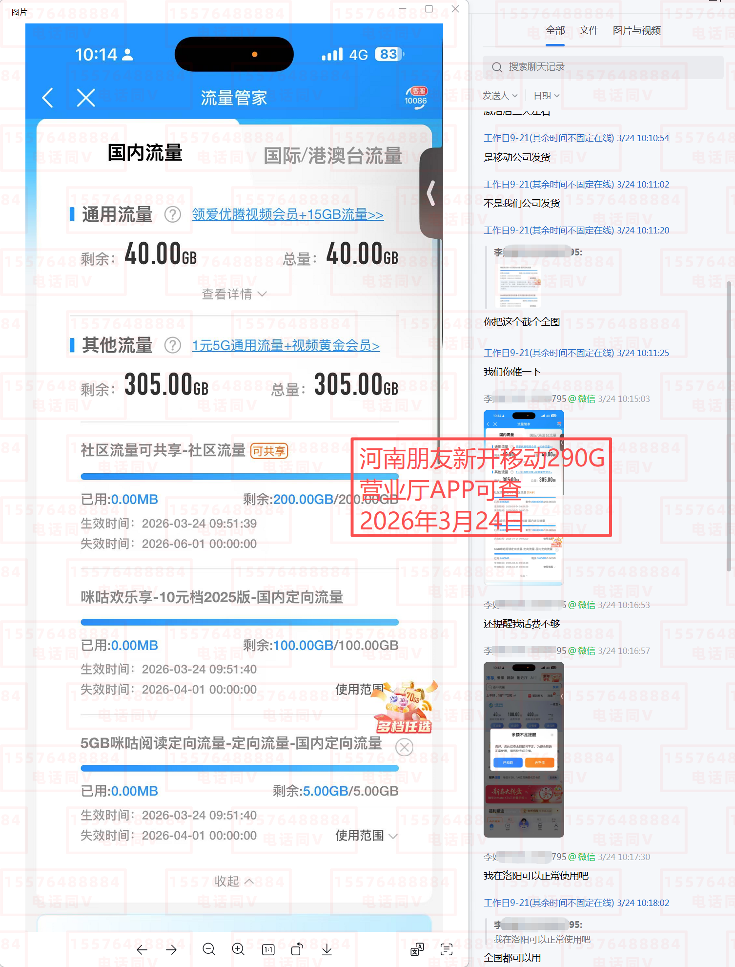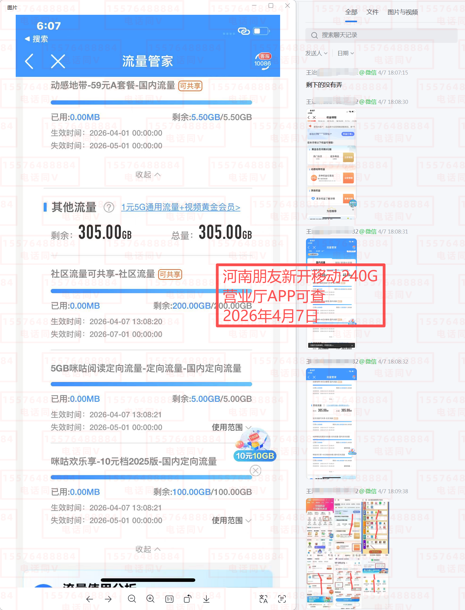 近期河南移动新开通大流量卡返图,本套餐运营商要求先激活后发货,正规手机卡,营业厅APP/移动客服10086均可查!