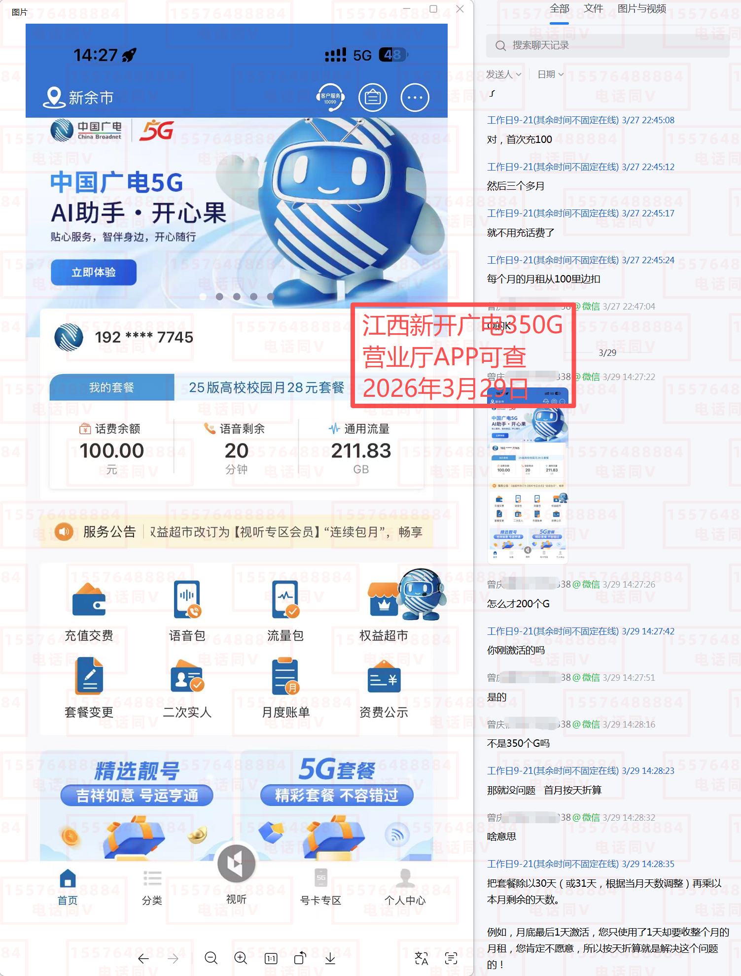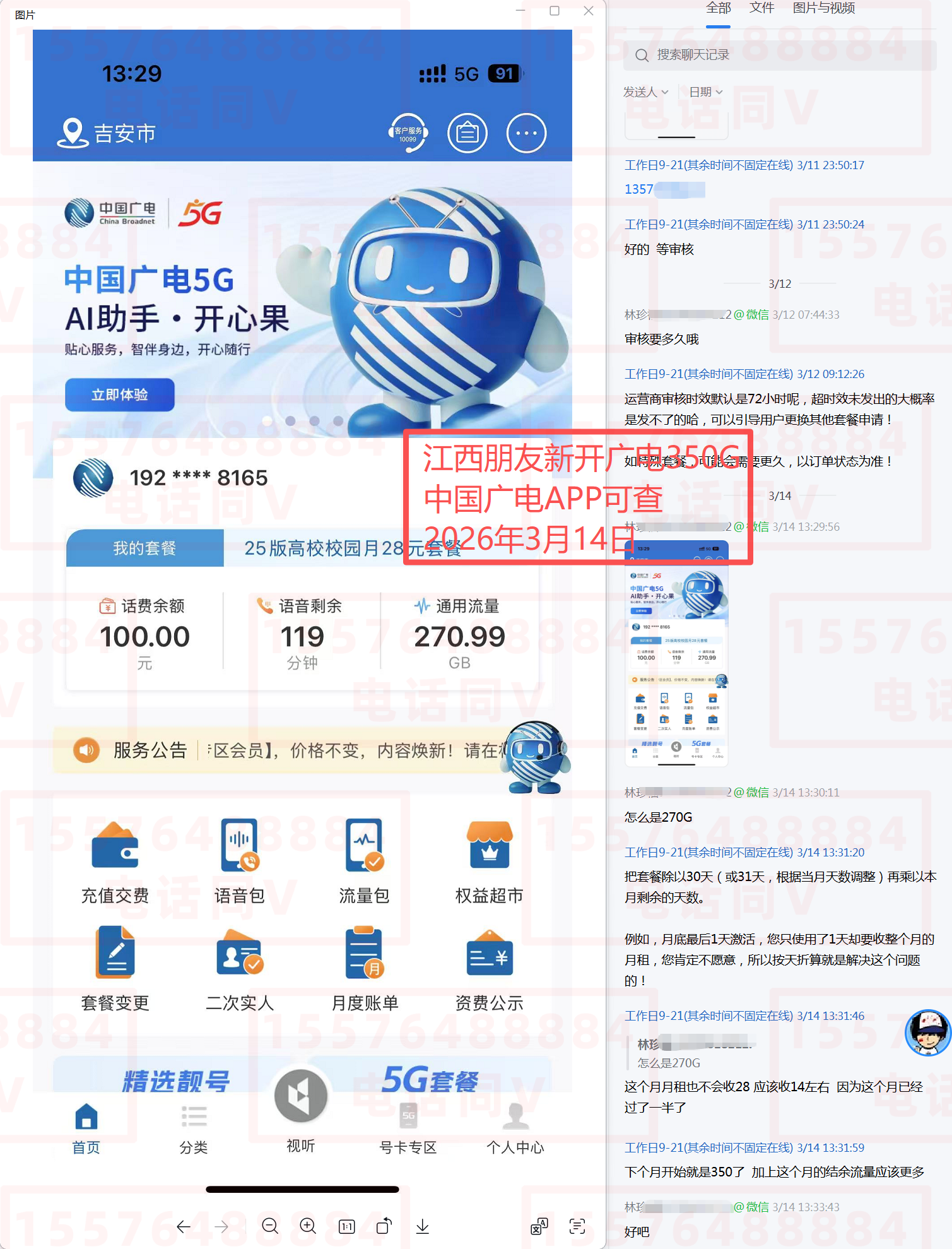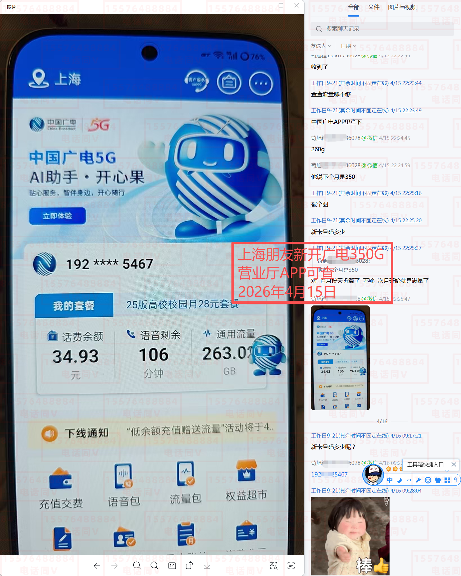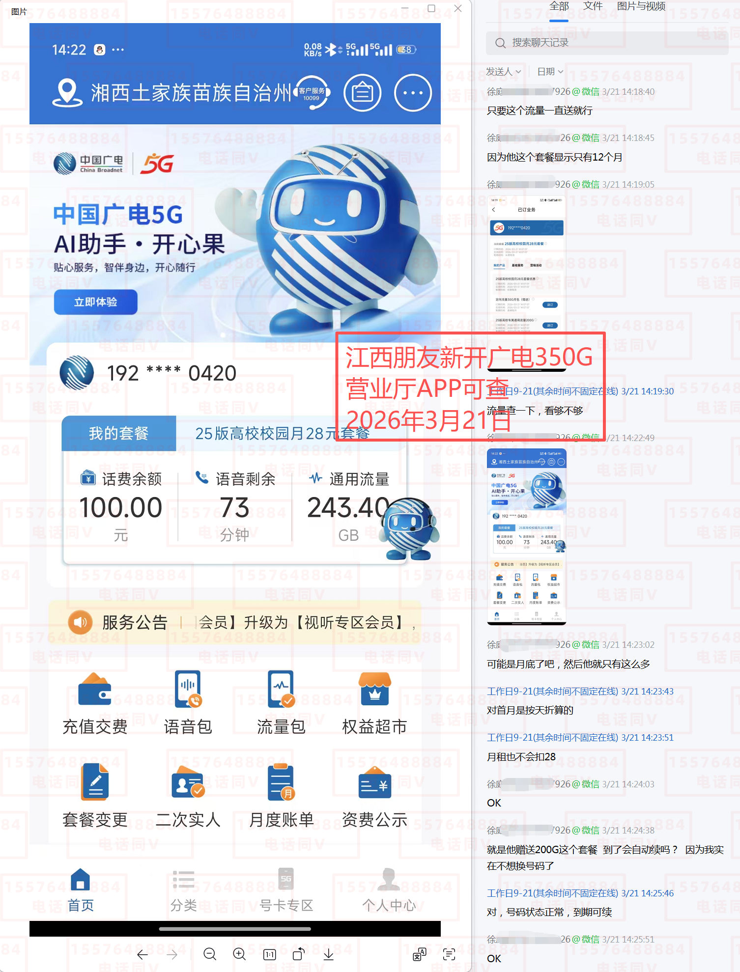 近期江西朋友新开广电350G,正规手机卡,营业厅APP/广电客服10099均可查!