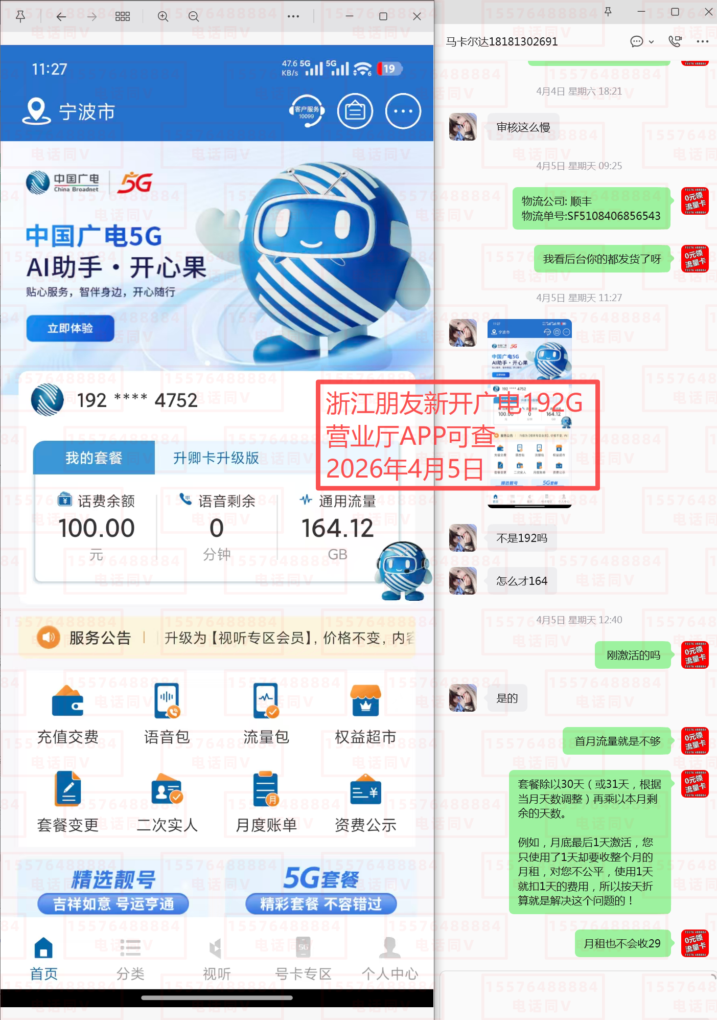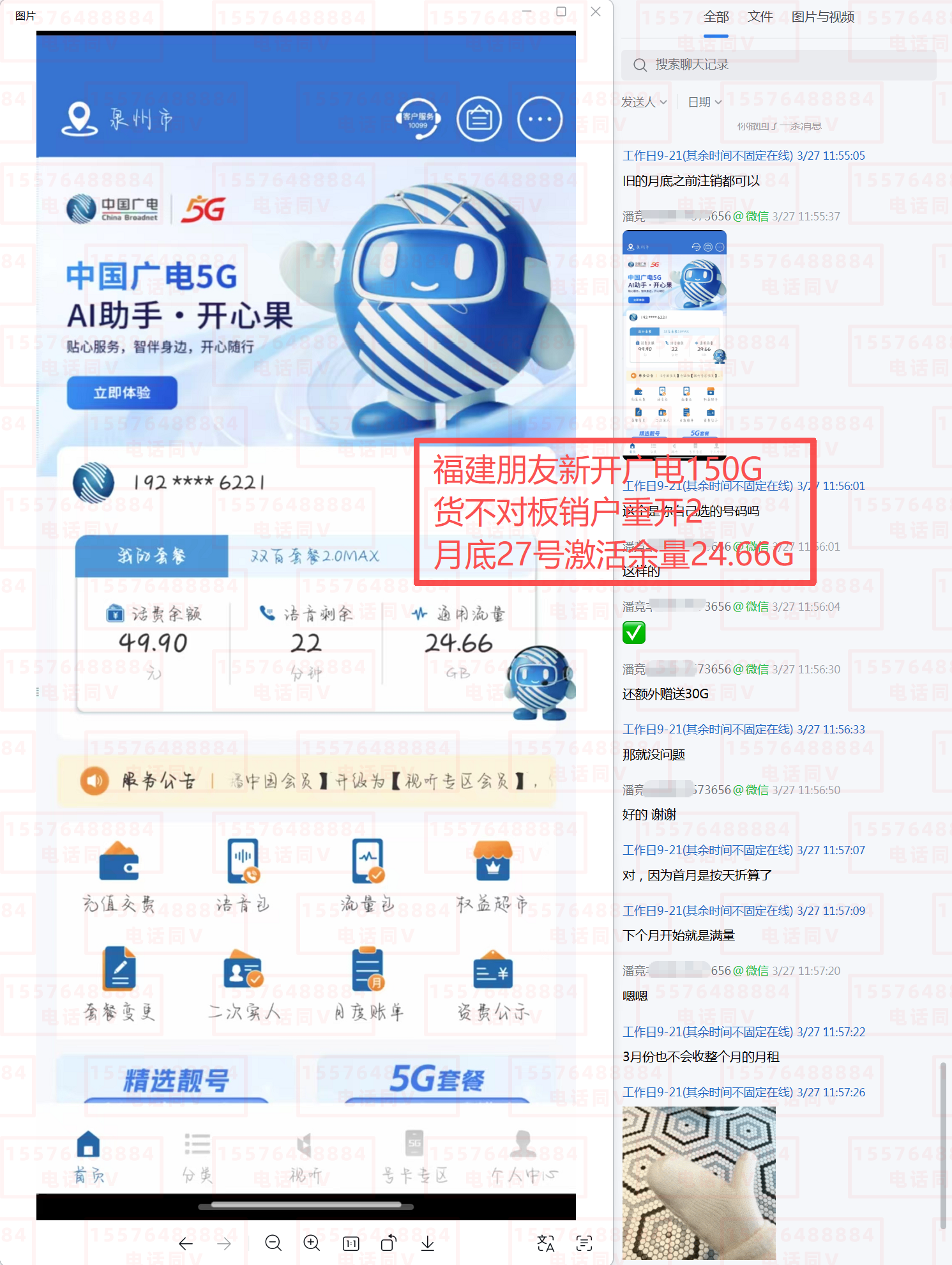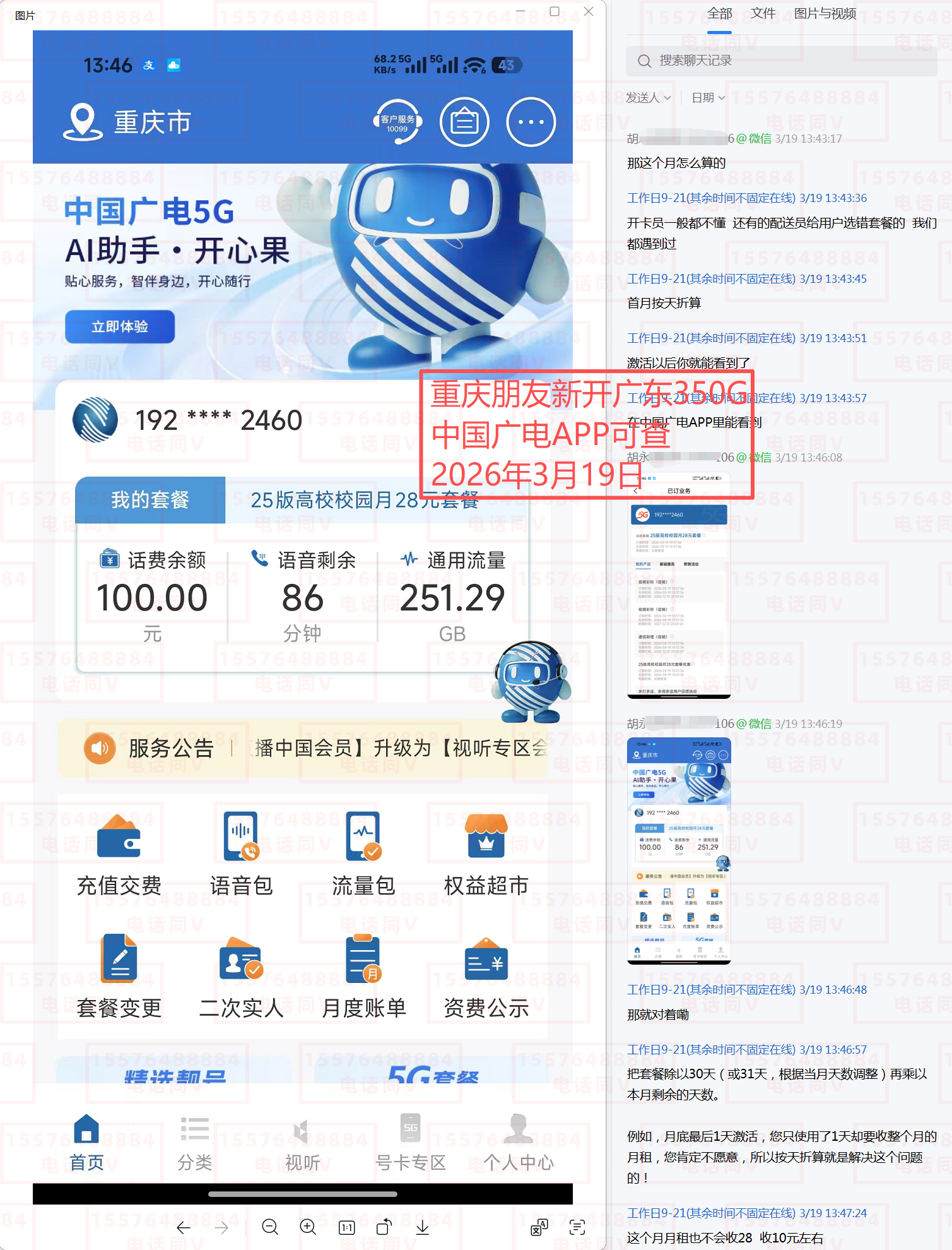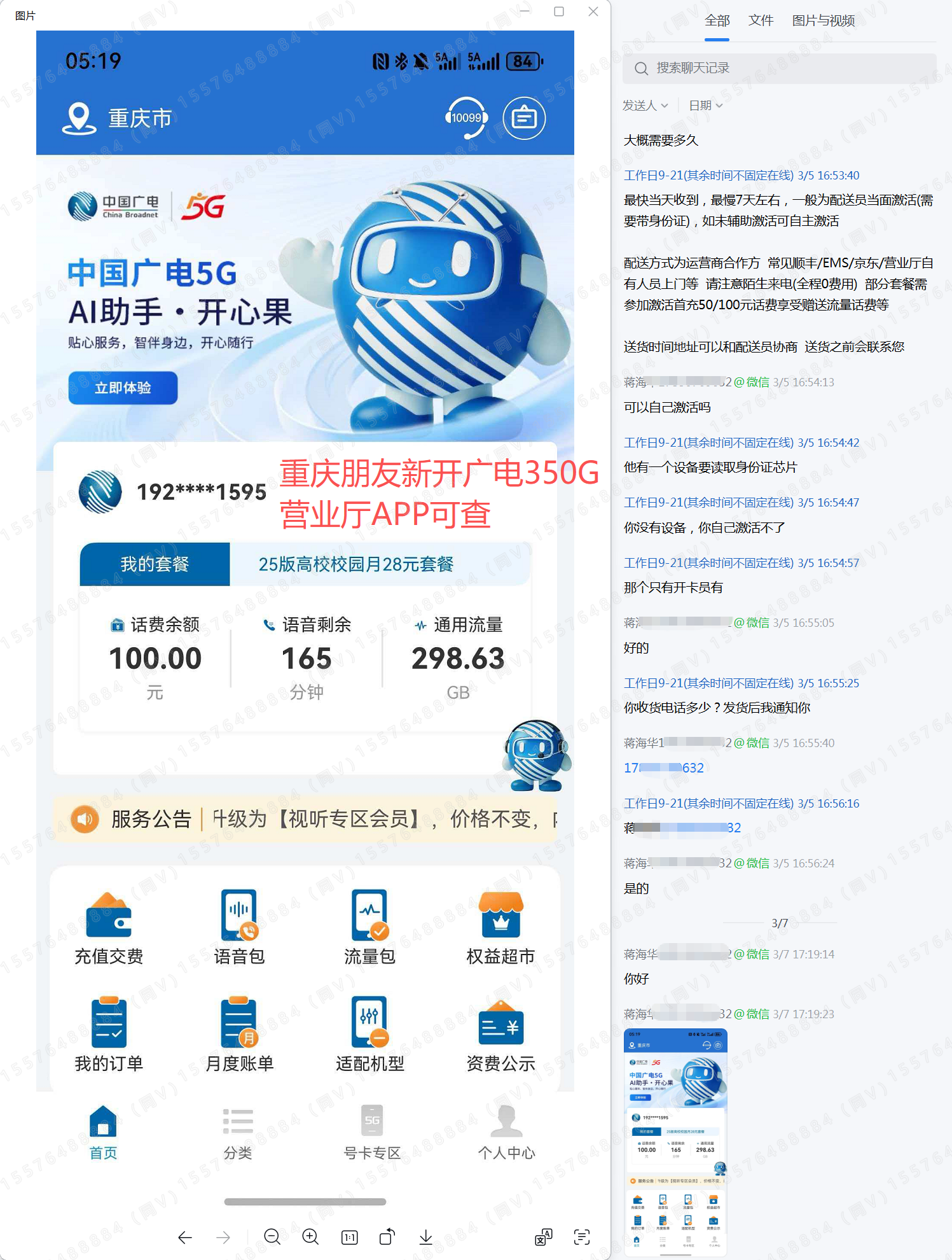 近期江西朋友新开广电350G,正规手机卡,营业厅APP/广电客服10099均可查!