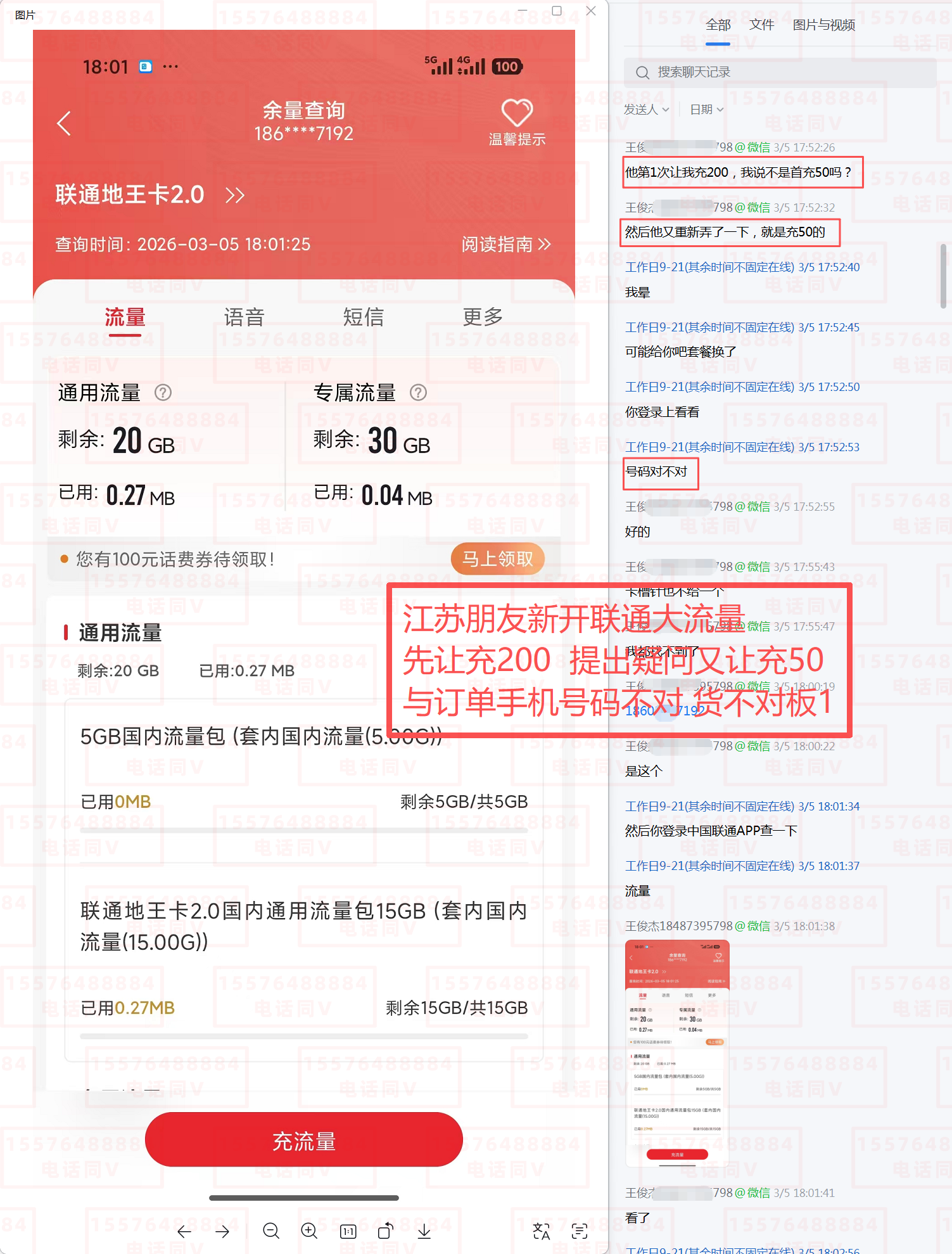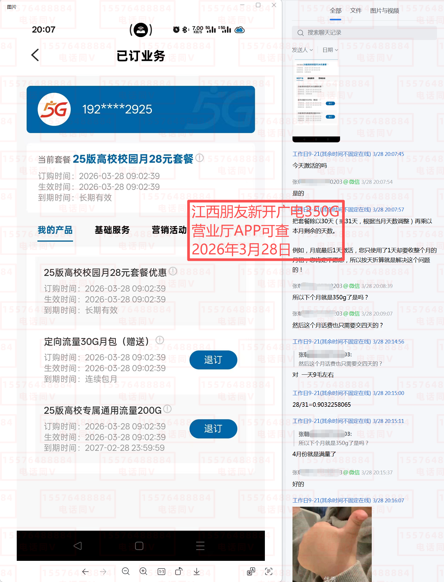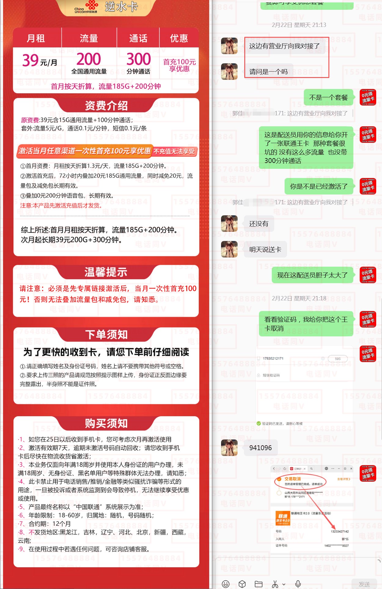 激活时一定要核对套餐,查一查流量通话够不够,部分代理商会虚假宣传,个别配送员会给用户改套餐,虚假宣传套餐不符这锅我们不背!
