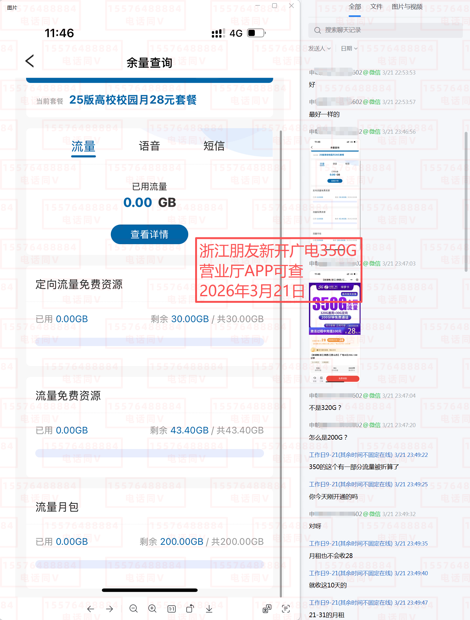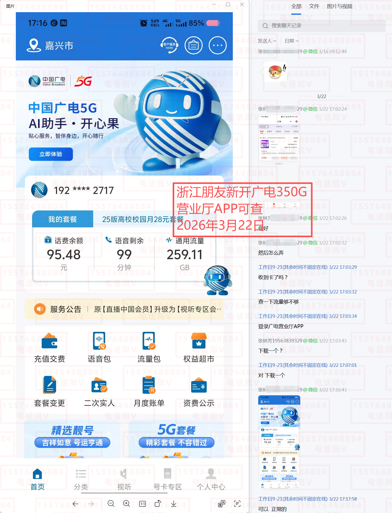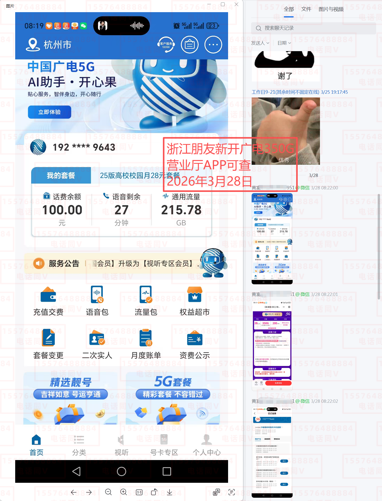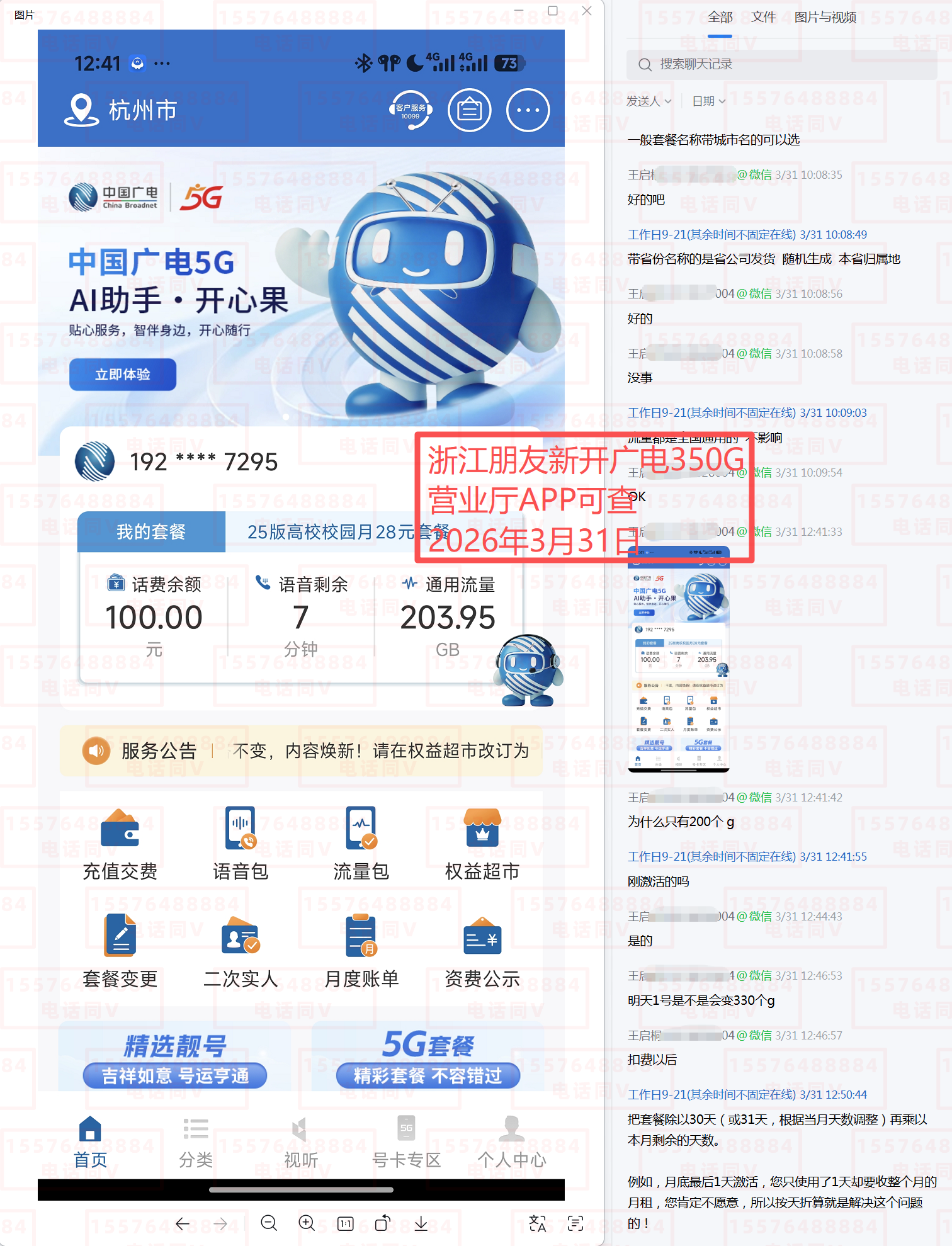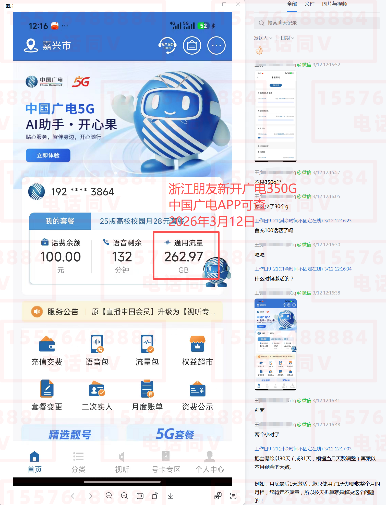 近期浙江朋友新开广电350G,营业厅APP/广电客服10099均可查!支持5G!支持加副卡!